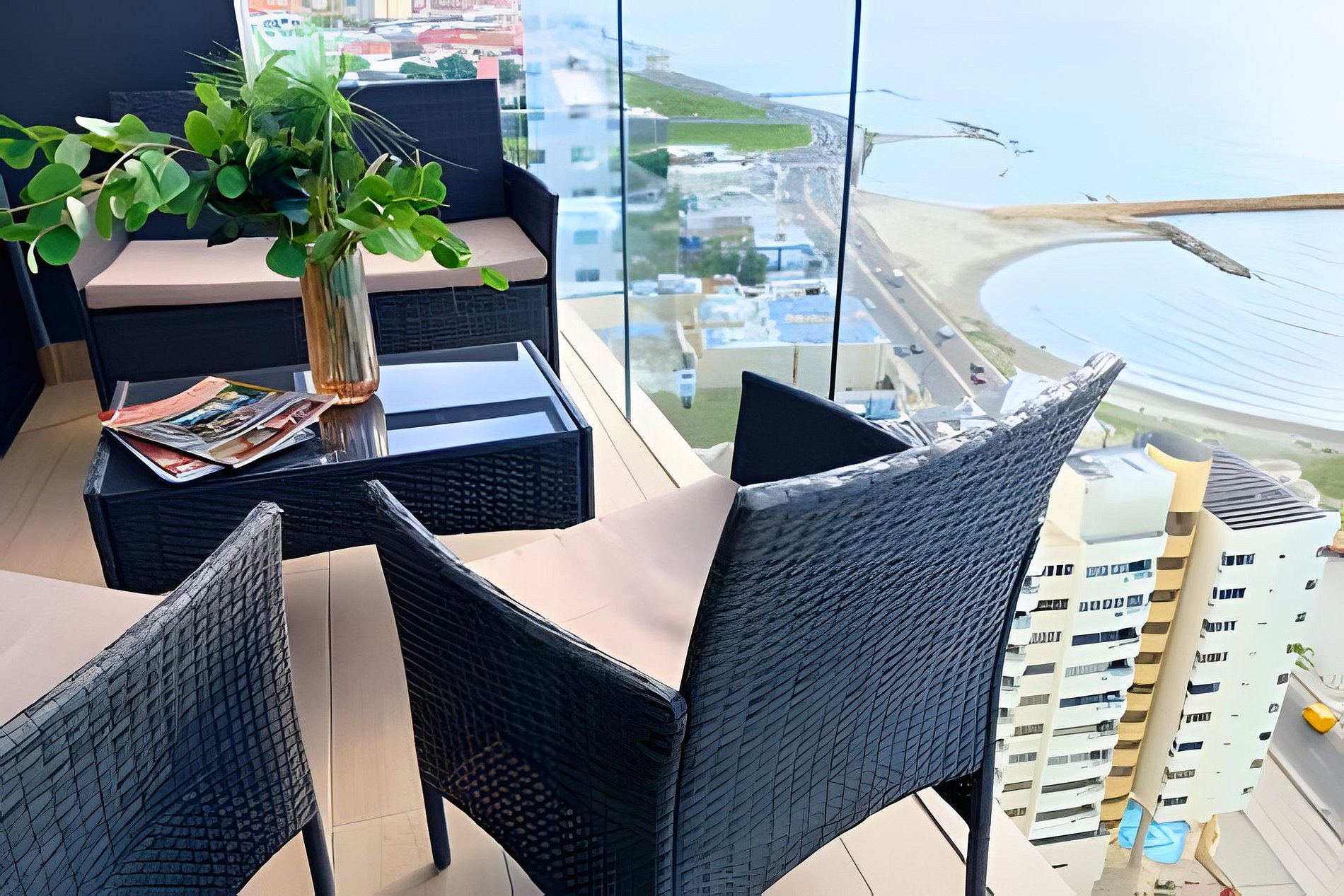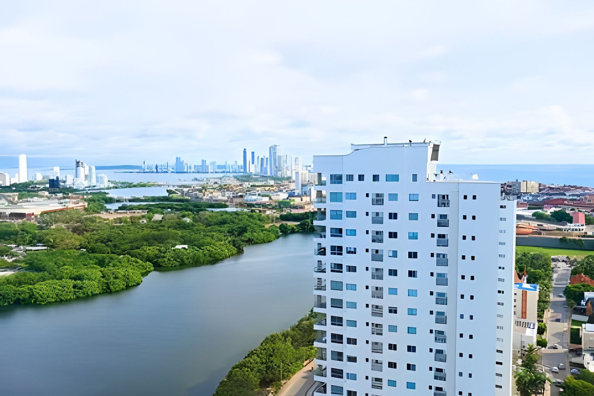 Discover tranquility and luxury at our 2bedroom, 2bathroom apartment boasting breathtaking views of the city and just steps away from both the beach (50 meters) and the historic walled city of Cartagena (4 Blocks). Located in a safe and serene neighborhood, enjoy first-class amenities including a stunning 180-degree view pool, fully equipped gym, coworking space, and wet areas. Ideal for those seeking comfort, security, and unparalleled views