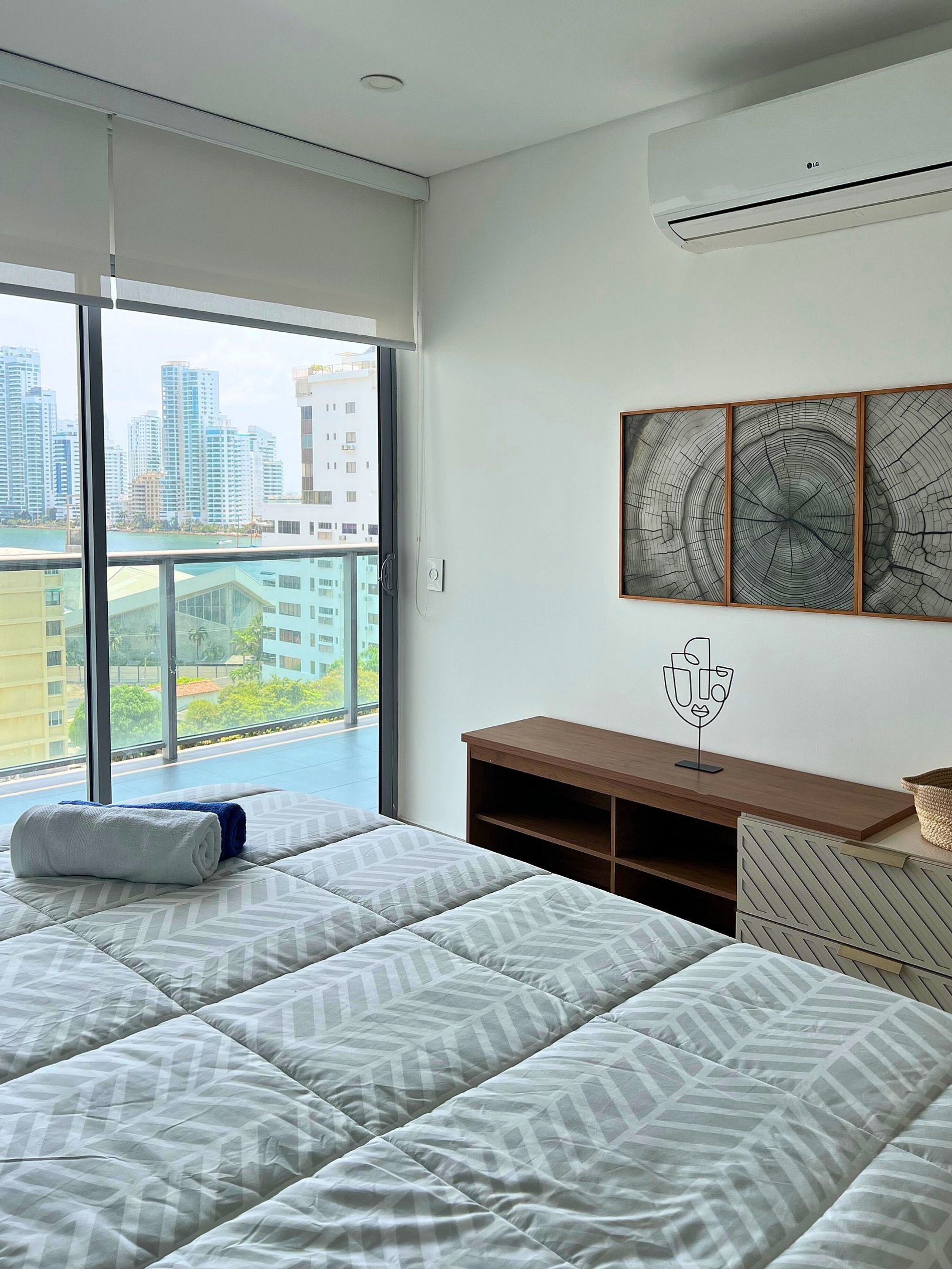 Stay in the heart of Bocagrande in this stylish 1BR apartment with stunning views. Designed for comfort, it features a king bed, 2 bathrooms, a full kitchen, a dining area, and a spacious balcony. With modern decor and plenty of closet space, it’s the perfect retreat for up to 3 guests. Enjoy a relaxing stay just steps from the beach, restaurants, and shopping. Book now and experience Cartagena in style!