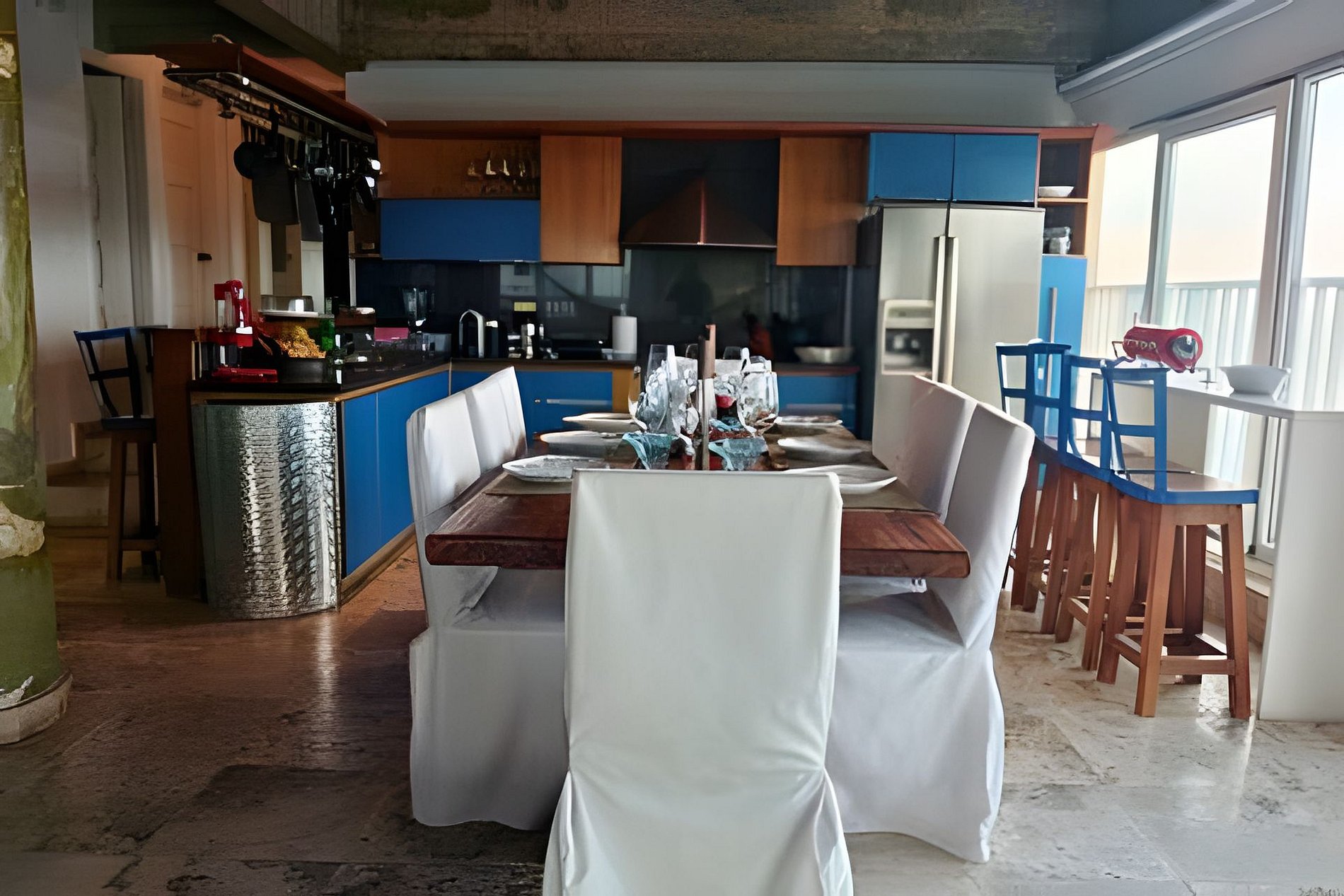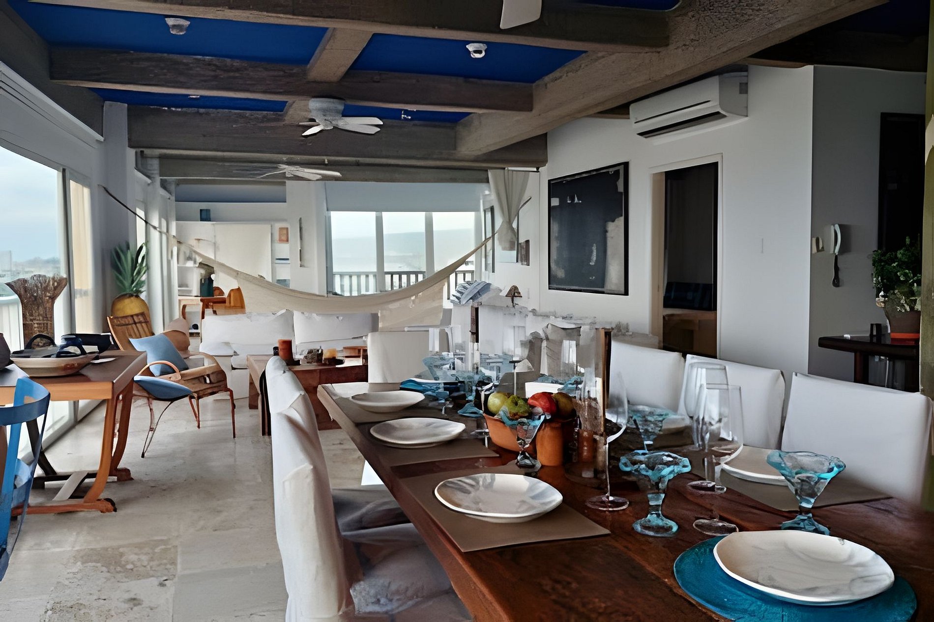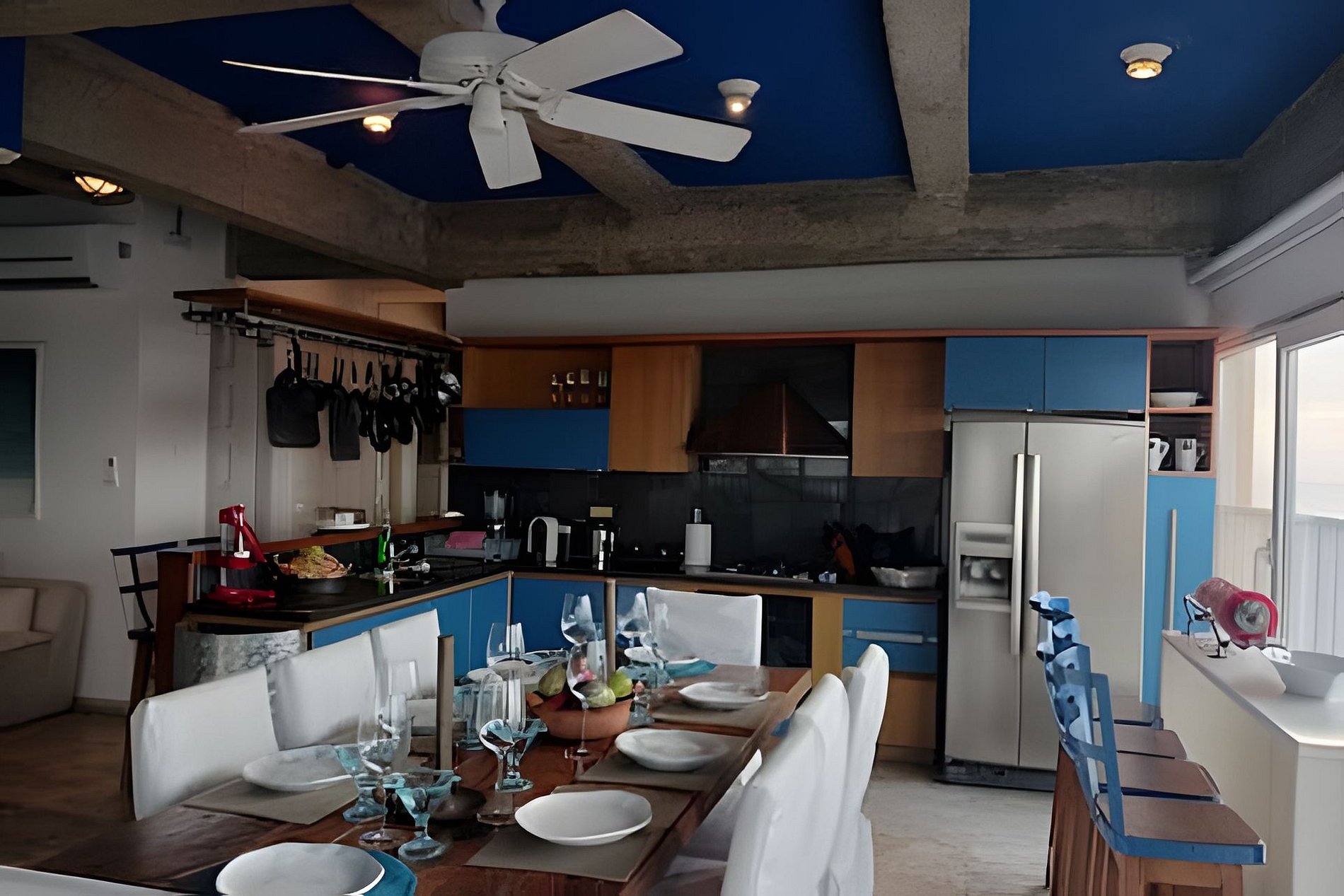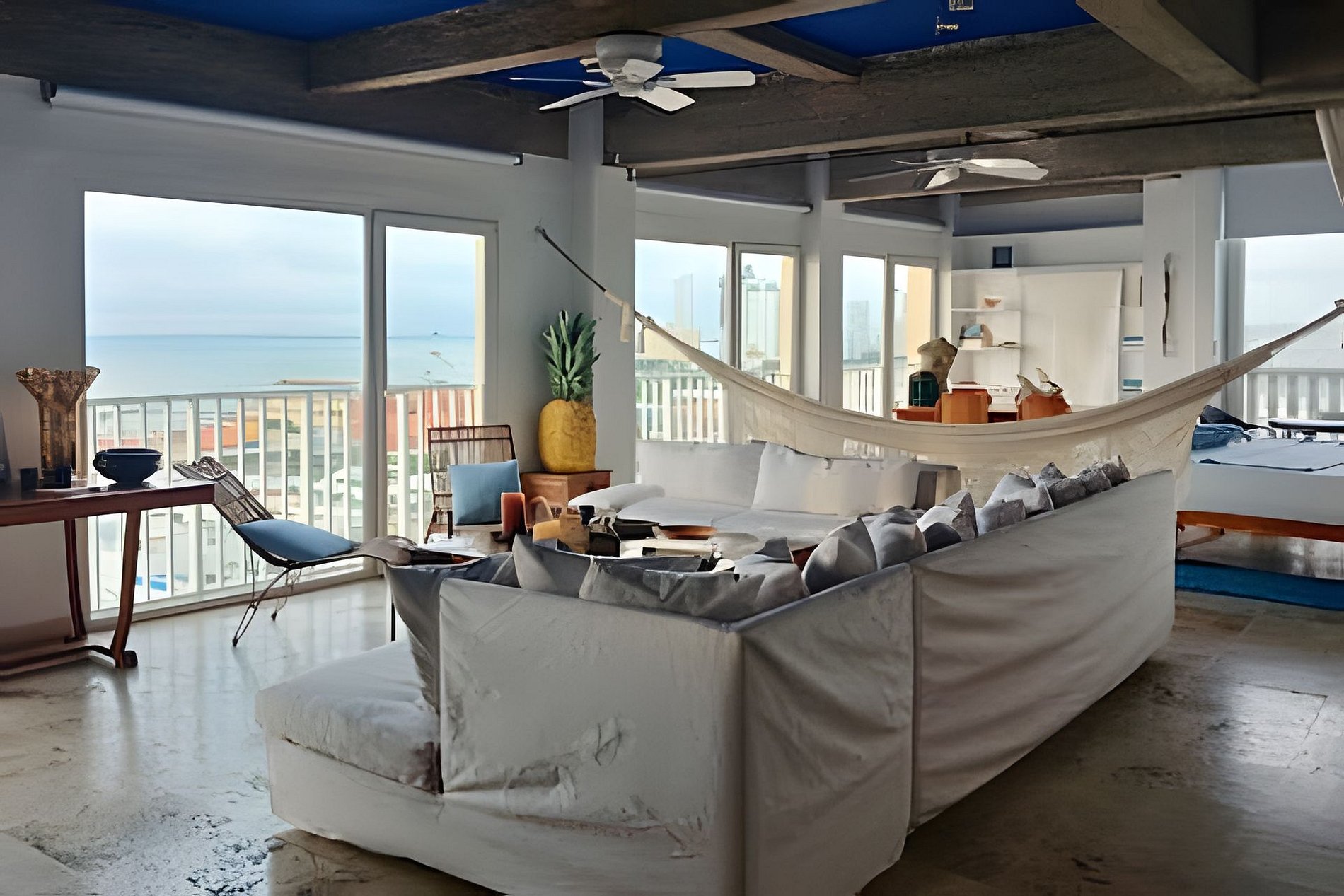 Experimente el lujo en este espectacular loft artístico de 150 m2, ubicado en el corazón de la ciudad amurallada de Cartagena. Este edificio, patrimonio cultural, ofrece inigualables vistas panorámicas de 270 grados de la ciudad. Bellamente decorado con detalles artísticos, cuenta con dos baños, cocina totalmente equipada, amplio comedor y capacidad para hasta 8 personas. Aire acondicionado, ventiladores de techo, wifi y televisión garantizan una comodidad perfecta.