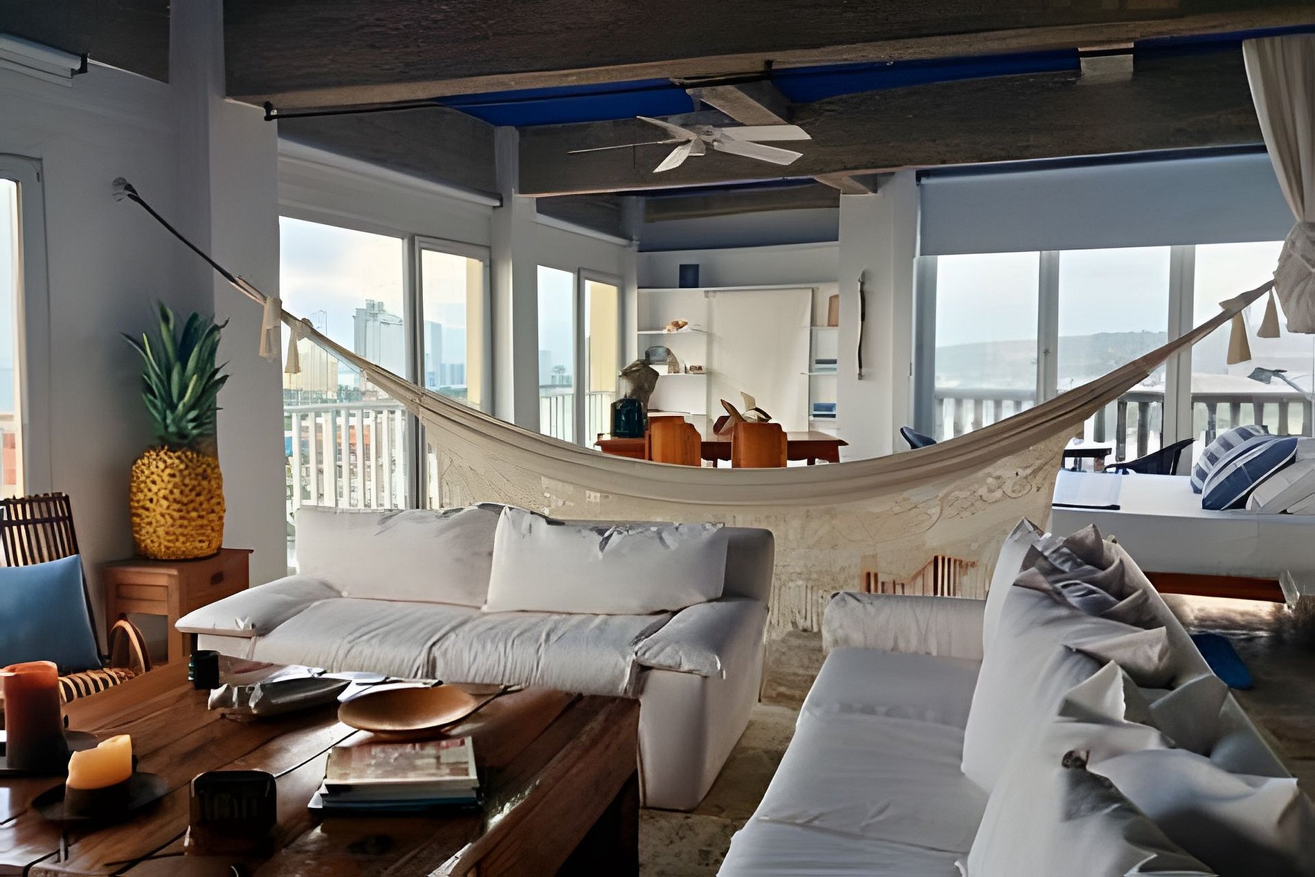 Experimente el lujo en este espectacular loft artístico de 150 m2, ubicado en el corazón de la ciudad amurallada de Cartagena. Este edificio, patrimonio cultural, ofrece inigualables vistas panorámicas de 270 grados de la ciudad. Bellamente decorado con detalles artísticos, cuenta con dos baños, cocina totalmente equipada, amplio comedor y capacidad para hasta 7 personas con 2 camas king. Aire acondicionado, ventiladores de techo, wifi y televisión garantizan una comodidad perfecta.