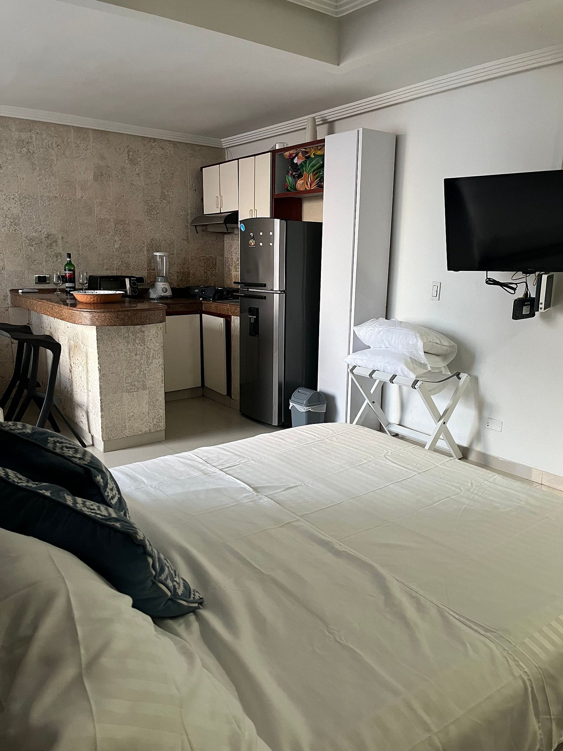 Bienvenidos a tu refugio en El Laguito, Cartagena! Este moderno apartaestudio para hasta 4 personas, combina confort y ubicación perfecta. A solo pasos de la playa, disfruta de días soleados y caminatas junto al mar. Rodeado de restaurantes, tiendas y locales comerciales, tendrás todo lo que necesitas al alcance de tu mano. Ideal para parejas o viajeros que buscan comodidad y conveniencia en el corazón de la ciudad. ¡Tu escapada perfecta en Cartagena te espera.