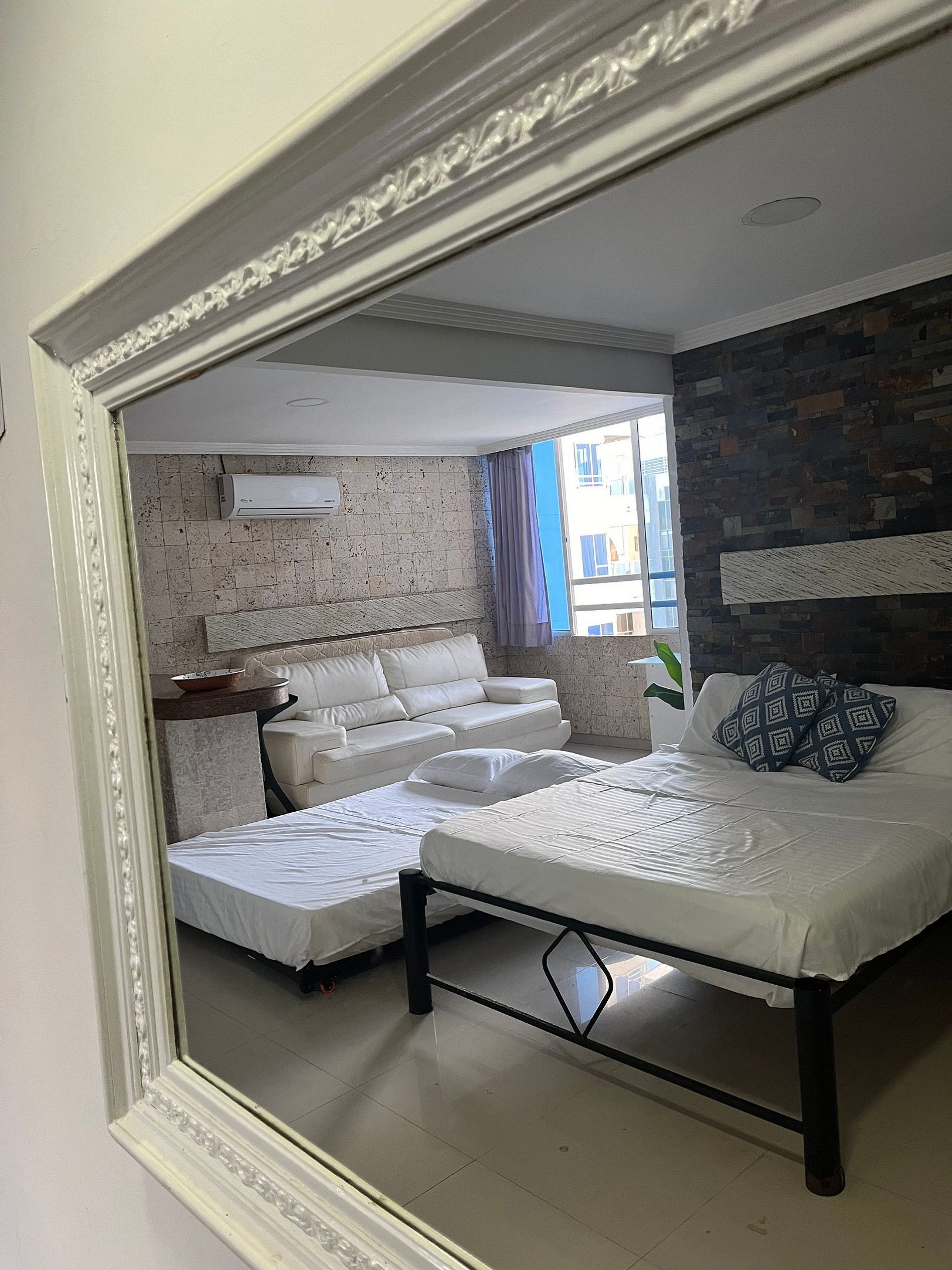 El apartaestudio se encuentra en el sector de El Laguito, una zona segura y privilegiada de Cartagena al lado del Hotel Hilton. A solo pasos de la playa, ofrece fácil acceso a diversos supermercados y tiendas para tu comodidad. Cuenta con un Supermercado Ara al lado, lavanderia abajo en el mismo edificio y varios minimarket y farmacia cruzando la calle.