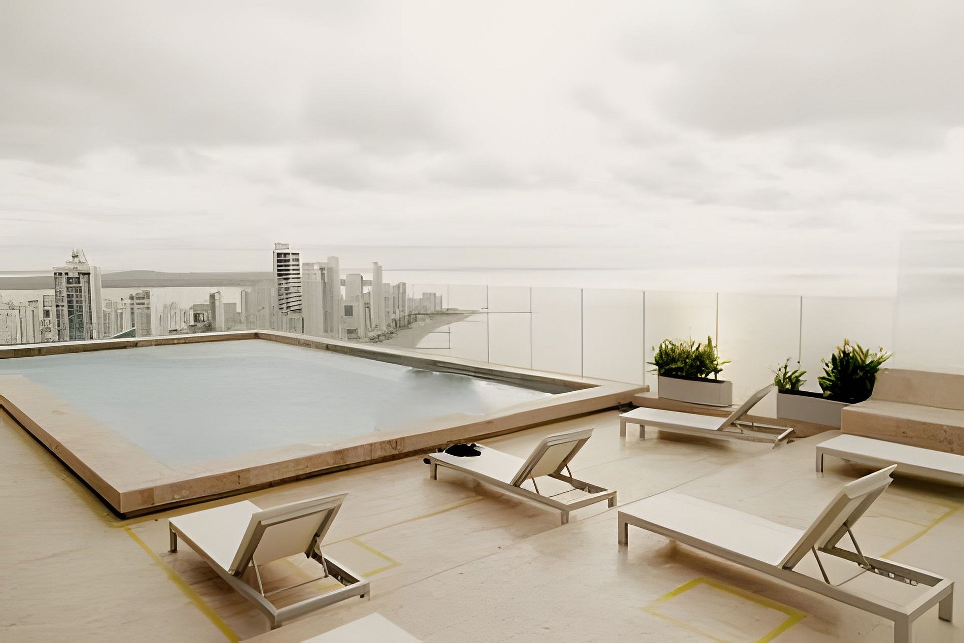 En el edificio hay dos áreas de piscina; una en el último piso y la otra en el cuarto, donde también hay una piscina con propulsión para practicar natación. Además hay un gimnasio completamente equipado, al cual también tienen acceso los huéspedes.